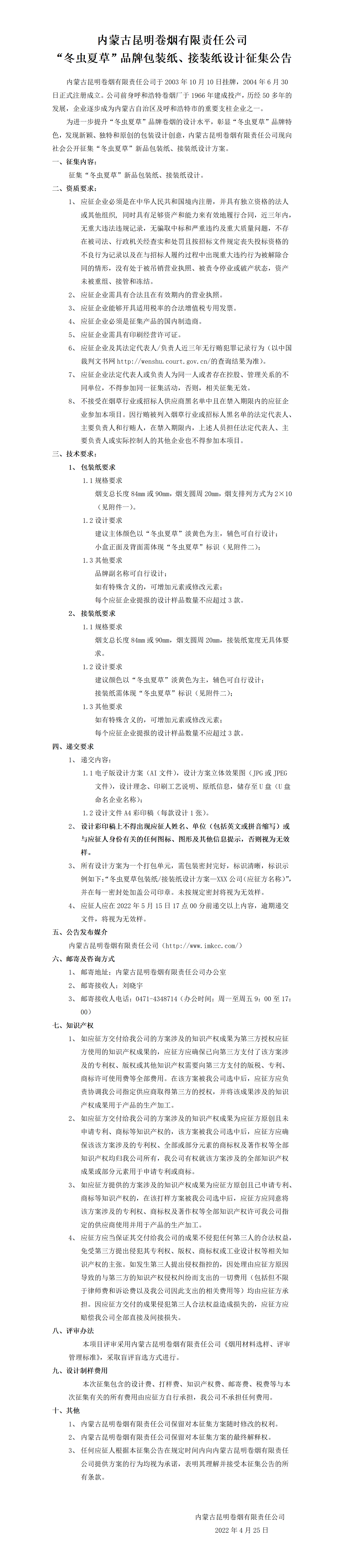附件:內(nèi)蒙古昆明卷煙有限責(zé)任公司“冬蟲夏草”品牌包裝紙、接裝紙?jiān)O(shè)計(jì)征集公告附件.rar
